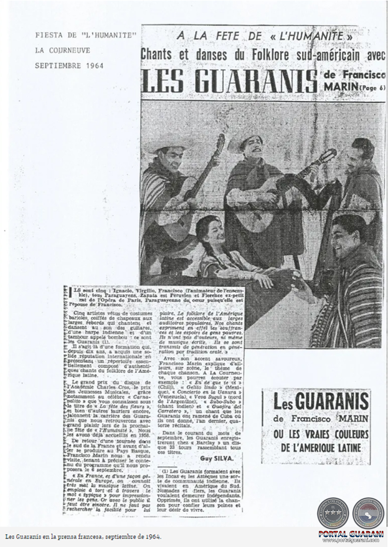 Les Guaranís eran estrellas del firmamento cultural absolutamente silenciadas en su país de origen por el sistema dictatorial imperante en aquella época. En París, donde residían, eran, en cambio, considerados una institución cultural. De hecho, forman ya parte de la historia del espectáculo de la Ciudad Luz. En esas épocas gloriosas, los discos del conjunto Les Guaranís, de Francisco Marín, eran exhibidos en lugares especiales en las disquerías de París. En Paraguay, sin embargo, jamás tuvieron la posibilidad de dar un concierto. La dictadura no lo permitía.