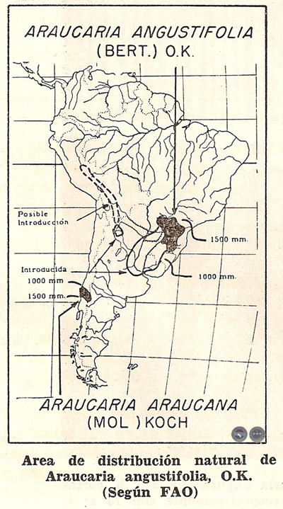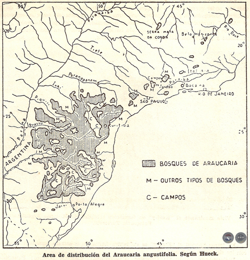 Hueck, Kurt: "Distribuiciao e hábitat natural do Pinheiro do Paraná". Bol, de la Fac. deFil., Ciencias y Letras. Botánica, Nº 10. San Pablo, 1953.