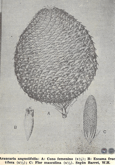 Barret, Wilfredo H. G.: "Las Plantas cultivadas en la República Argentina. Araucarláceas". Rev. del Instituto de Botánica Agrícola, Vol. I; Fasc. 19. Buenos Aires, 1958.