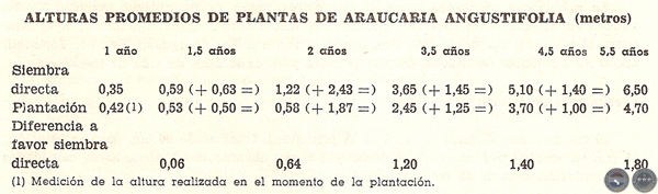 De acuerdo con estos resultados, pueden obtenerse, con las densidades señaladas, hasta 30 mt. cúbicos por hectárea y por año.
