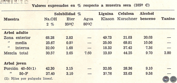 Valente, Hilda Mabel: "Estudio químico de la madera de ocho coníferas autóctonas". Rev. deInvestigaciones Forestales. T. IV – Nº 1 - Buenos Aires, 1963.