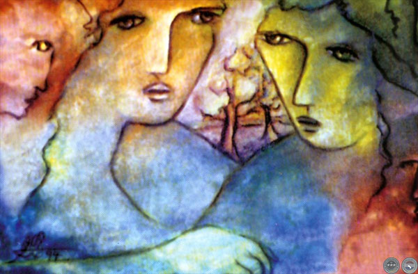 Pero sus pinturas, mantenidas dentro de los límites formales reconocibles, se deforman al ajustarse a la angustia de ese secreto que gobierna texturas, color, diseño, composición y les imprime su torsión expresionista. El hombre en Olga Blinder -varón, mujer, niño- es el de la hora última, temeroso -más que responsable- del porvenir que acumula, porque busca el misterio de otros mundos sin haber aclarado su destino pleno sobre éste. La pintura de Olga en suma es una pintura de mensaje. Y no teme dejarlo ver. Porque la intención o el mensaje es inevadible en todo gesto y en toda presencia humana. Los extremismos actuales pretenden prescindir de intención o mensaje; pero la copiosa literatura sobre los mimos parece desmentir esa prescindencia. ¿Explicar una obra no es ya de por sí atribuirle -o buscarle- ese mensaje?. La pintura de Olga Blinder, de materia siempre atractiva, de línea atormentada, como su color, que desdeña la claridad por los senderos en sombra de la monocromía -grises, tierras- o lo problematiza en espacios no significativos; de composición en la cual encontramos a menudo una voluntad de ruptura con lo tradicional como en estas pinturas de superficies irregulares, poligonales, que plantean lo caduco en el multisecular concepto de la superficie; pero siempre perfectamente compatible con su apego a los valores sustanciales humanos, es una obra sincera y llena de fervor. Hay en su obra la sinceridad sin la cual no hubo nunca ni habrá arte pleno.