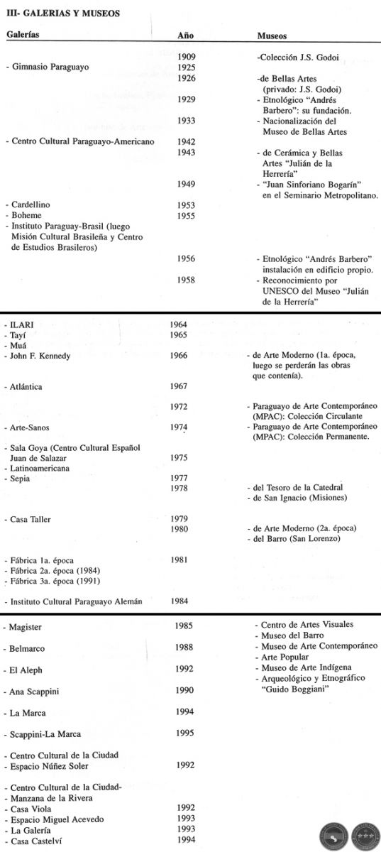 GALERIAS Y MUSEOS DEL PARAGUAY (1909 - 1994)