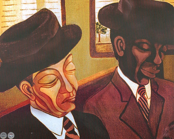Pero sus pinturas, mantenidas dentro de los límites formales reconocibles, se deforman al ajustarse a la angustia de ese secreto que gobierna texturas, color, diseño, composición y les imprime su torsión expresionista. El hombre en Olga Blinder -varón, mujer, niño- es el de la hora última, temeroso -más que responsable- del porvenir que acumula, porque busca el misterio de otros mundos sin haber aclarado su destino pleno sobre éste. La pintura de Olga en suma es una pintura de mensaje. Y no teme dejarlo ver. Porque la intención o el mensaje es inevadible en todo gesto y en toda presencia humana. Los extremismos actuales pretenden prescindir de intención o mensaje; pero la copiosa literatura sobre los mimos parece desmentir esa prescindencia. ¿Explicar una obra no es ya de por sí atribuirle -o buscarle- ese mensaje?. La pintura de Olga Blinder, de materia siempre atractiva, de línea atormentada, como su color, que desdeña la claridad por los senderos en sombra de la monocromía -grises, tierras- o lo problematiza en espacios no significativos; de composición en la cual encontramos a menudo una voluntad de ruptura con lo tradicional como en estas pinturas de superficies irregulares, poligonales, que plantean lo caduco en el multisecular concepto de la superficie; pero siempre perfectamente compatible con su apego a los valores sustanciales humanos, es una obra sincera y llena de fervor. Hay en su obra la sinceridad sin la cual no hubo nunca ni habrá arte pleno.