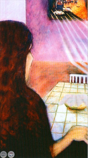 Tomando esas obras anteriores como premisas y utilizando el collage, las ubica a modo de ventana en algunas o de espejo en otras, entremezclándolas con manchas de color y de contornos borrosos en una maraña de texturas y formas superpuestas. La ventana juega un papel significativo en la composición, ya sea como elemento de transición entre lo real y lo imaginario, o como comunión del presente con el pasado.
