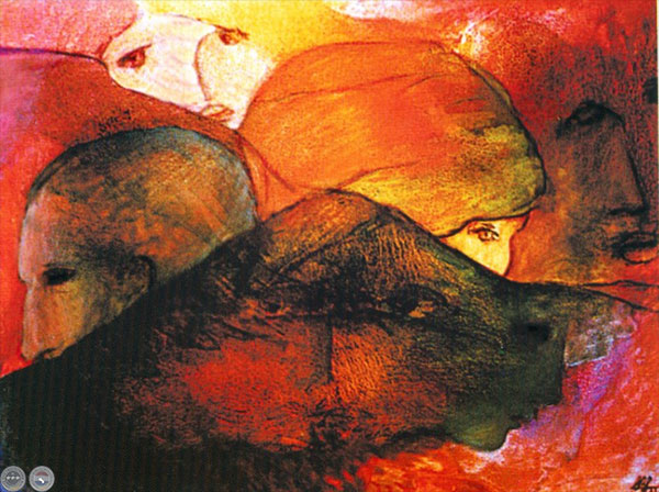 Pero sus pinturas, mantenidas dentro de los límites formales reconocibles, se deforman al ajustarse a la angustia de ese secreto que gobierna texturas, color, diseño, composición y les imprime su torsión expresionista. El hombre en Olga Blinder -varón, mujer, niño- es el de la hora última, temeroso -más que responsable- del porvenir que acumula, porque busca el misterio de otros mundos sin haber aclarado su destino pleno sobre éste. La pintura de Olga en suma es una pintura de mensaje. Y no teme dejarlo ver. Porque la intención o el mensaje es inevadible en todo gesto y en toda presencia humana. Los extremismos actuales pretenden prescindir de intención o mensaje; pero la copiosa literatura sobre los mimos parece desmentir esa prescindencia. ¿Explicar una obra no es ya de por sí atribuirle -o buscarle- ese mensaje?. La pintura de Olga Blinder, de materia siempre atractiva, de línea atormentada, como su color, que desdeña la claridad por los senderos en sombra de la monocromía -grises, tierras- o lo problematiza en espacios no significativos; de composición en la cual encontramos a menudo una voluntad de ruptura con lo tradicional como en estas pinturas de superficies irregulares, poligonales, que plantean lo caduco en el multisecular concepto de la superficie; pero siempre perfectamente compatible con su apego a los valores sustanciales humanos, es una obra sincera y llena de fervor. Hay en su obra la sinceridad sin la cual no hubo nunca ni habrá arte pleno.