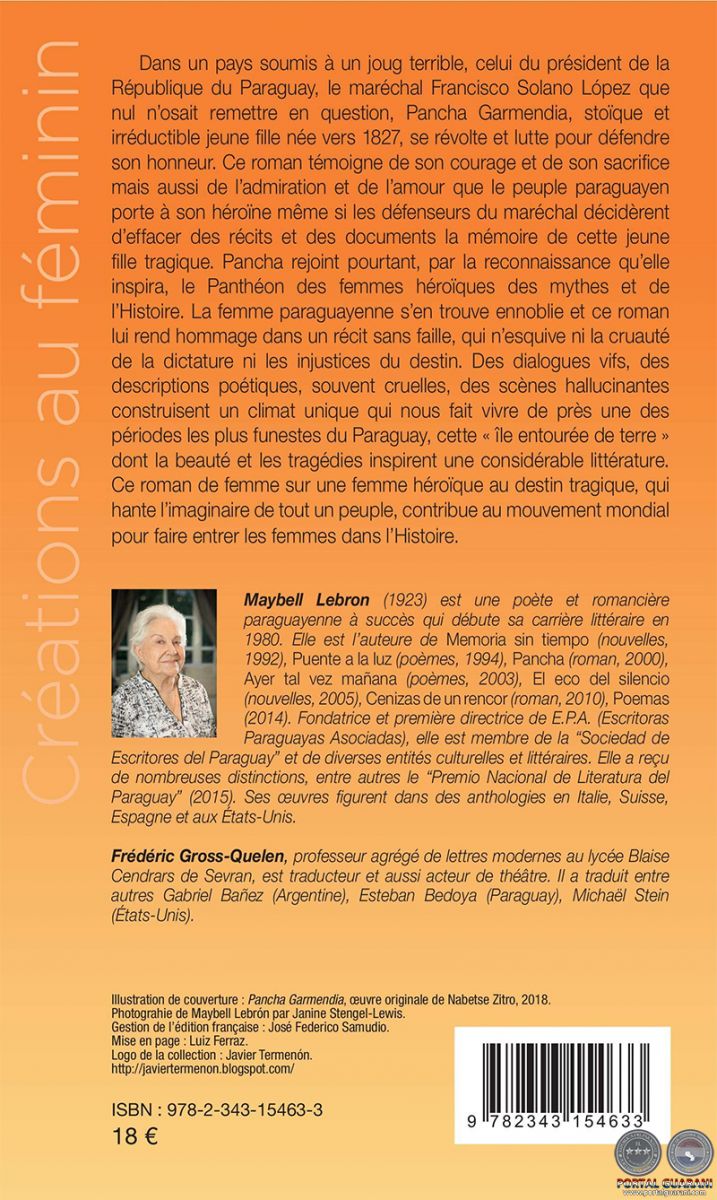 Dans un pays soumis à un joug terrible, celui du président de la République du Paraguay, Pancha Garmendia, stoïque et irréductible jeune fille née vers 1827, se révolte et lutte pour défendre son honneur. Ce roman témoigne de son courage et de son sacrifice mais aussi de l'admiration et de l'amour que le peuple paraguayen porte à son héroïne. La femme paraguayenne s'en trouve ennoblie et ce roman lui rend hommage dans un récit sans faille, qui n'esquive ni la cruauté de la dictature ni les injustices du destin. Ce roman de femme sur une femme héroïque au destin tragique, qui hante l'imaginaire de tout un peuple, contribue au mouvement mondial pour faire entrer les femmes dans l'Histoire.