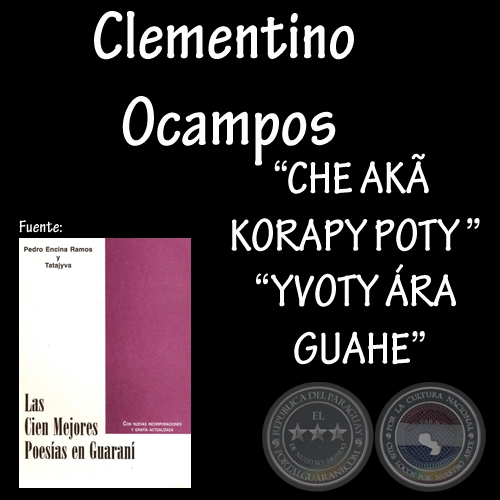 Fuente: LAS CIEN MEJORES POESÍAS EN GUARANÍ. - Con nuevas incorporaciones y grafía actualizada. Por PEDRO ENCINA RAMOS (PORTALGUARANI.COM) y TATAJYVA – RUBÉN D. CÉSPEDES (PORTALGUARANI.COM) - Asunción -Paraguay 1997 – 425 páginas