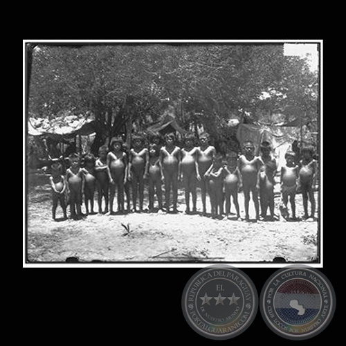 "Ragazzetti in fila nella toldería. Puerto 14 de Mayo. 18 x 24 cms."