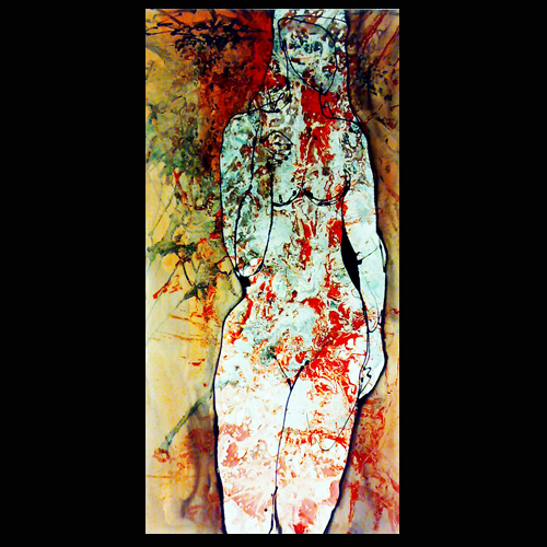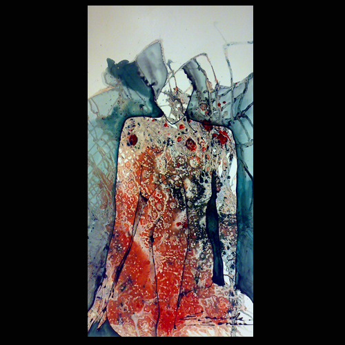“…..figuras femeninas, saliendo y entrando a un bosque de plantas imaginarias, de colores inexistentes. Rostros velados y escondidos, detrás de manchas, cuerpos suaves y obscenos, rugosos y tiernos, sensuales e impúdicos. Todo hace suponer una naturaleza inventada, una naturaleza invadida o simples “alquileres temporarios”, en un planeta deseado…….”