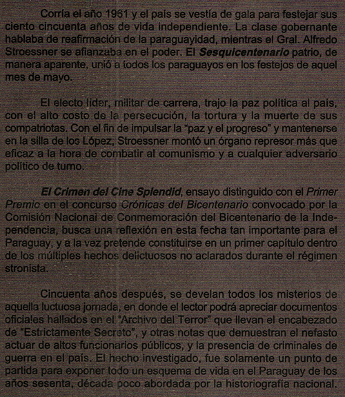 Crímenes, Dictadura, Genocidas, Corrupción, Impunidad y Operaciones encubiertas fueron términos sinónimos, unidos como eslabones de una gruesa cadena de tristeza, decadencia y vergüenza para las páginas de nuestra golpeada historia. Queremos resaltar que el hecho investigado, inserto en el título del trabajo, es solamente un punto de partida para exponer todo un esquema de vida en el país de aquel entonces.