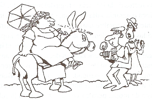 El Mercado Guazú era un gran centro de atracción turística. Los porteños venían con sus máquinas a fotografiar burreritas. Las paraban, las ponían elegantes con su cigarro poguasu en la comisura de los labios, les componían el ángulo del manto negro y del paraguas para que no quitasen luz, y hasta lograban el interés del pensativo burro. Algunas que se sentían disminuidas por estas impertinencias, se negaban a ponerse en pose, o en el momento de apretar el disparador soltaban un escupitajo tipo catarata con neblinas e irisados.