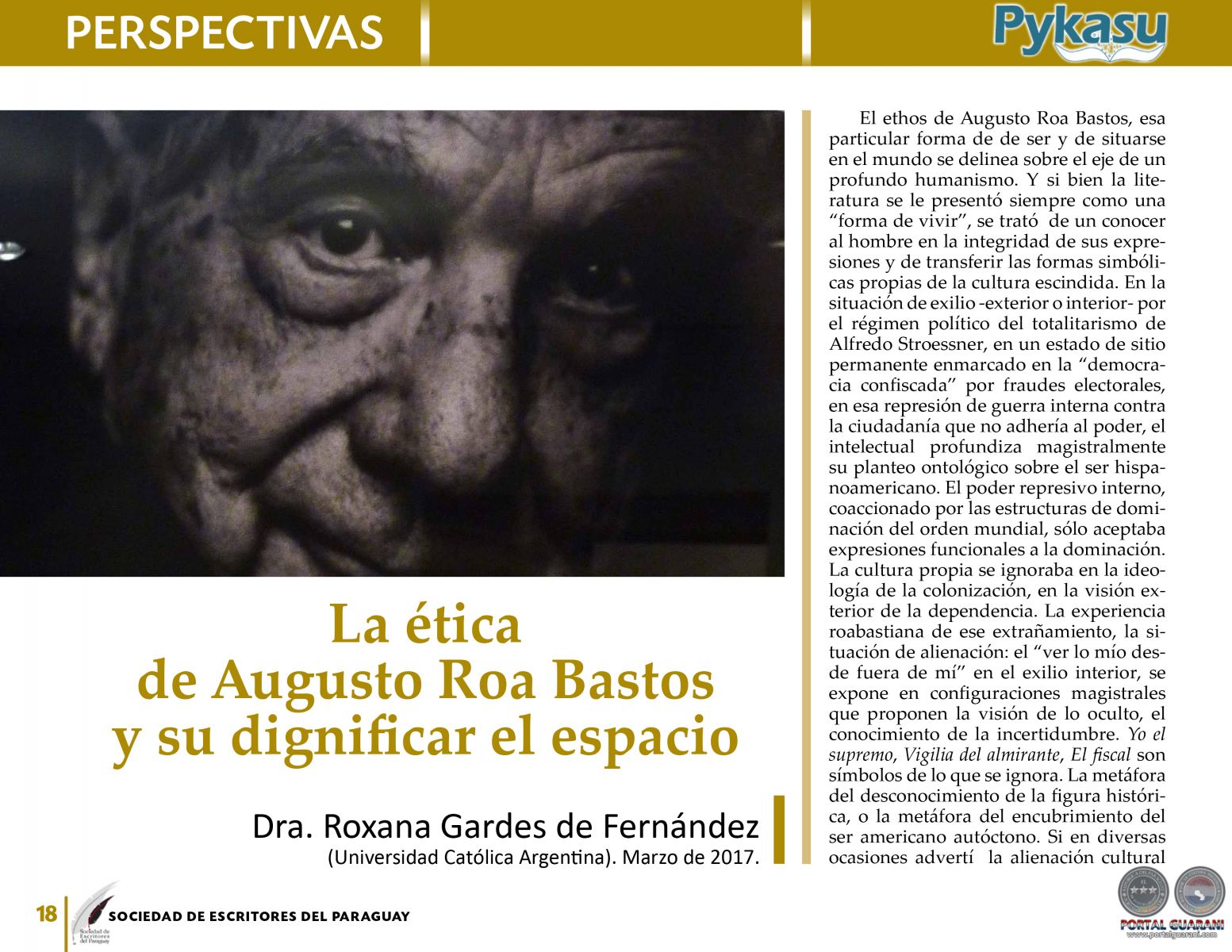 LA ÉTICA DE AUGUSTO ROA BASTOS Y SU DIGNIFICAR EL ESPACIO