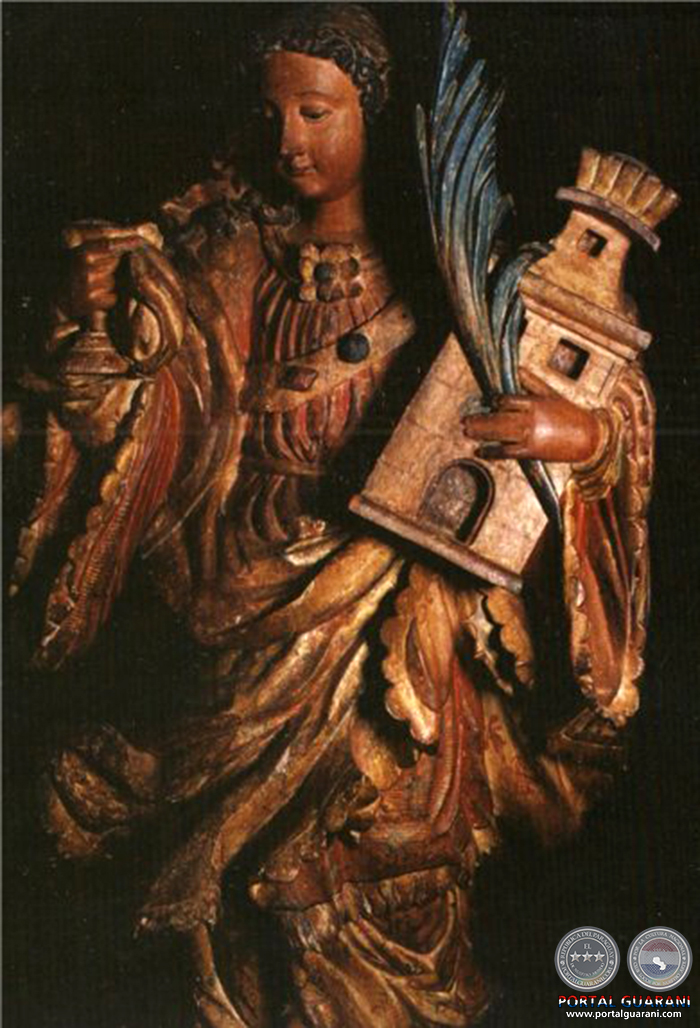 Santa Bárbara, talla en madera de la reducción jesuítica de Santa María de Fe. (Fotografía de Fernando Allen)