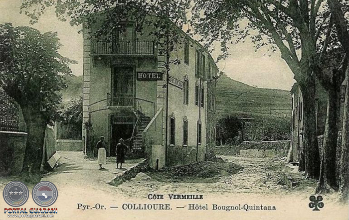 Una vieja postal con el estacionamiento donde pasó sus últimos días y murió Antonio Machado, el Hotel Bougnol-Quintana, en Collioure.