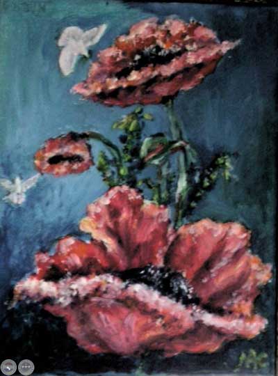 Nélida Amábile, Amapolas, óleo sobre lienzo