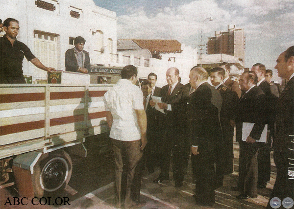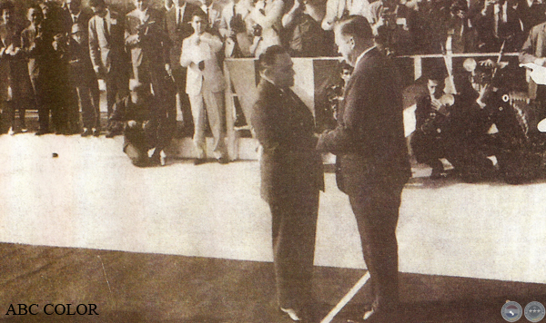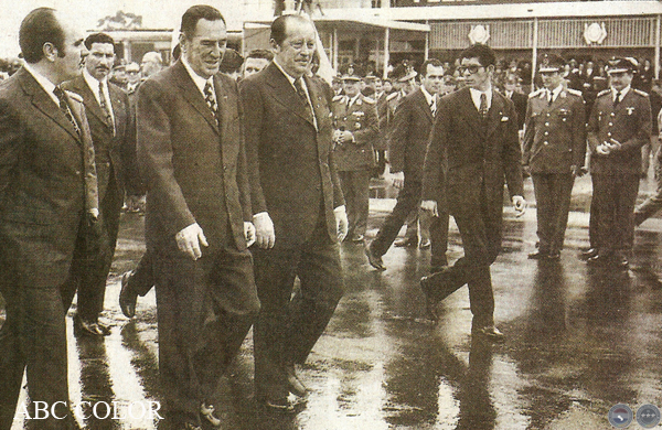 cuando la visita de este último al Paraguay, en 1974. Con los presidentes, el Dr. Conrado Pappalardo.