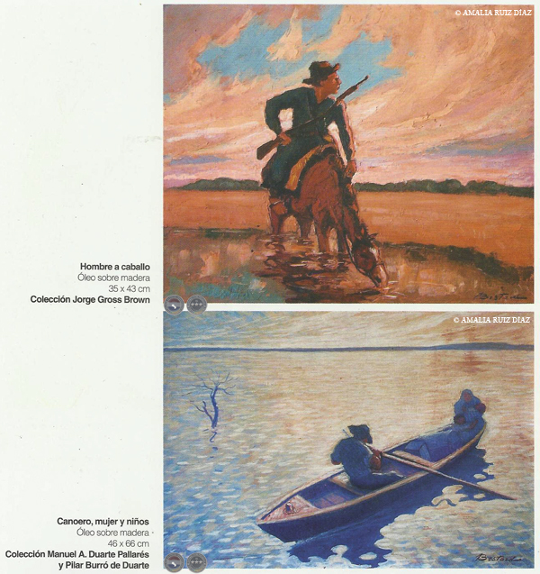 (...) Sus primeras pinturas, paisajes y algunos retratos se apoyan en formas que pertenecen a la visión naturalista de tono posimpresionista de esa época en el Río de la Plata.