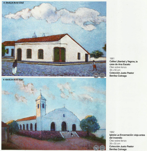 Labor arqueológica: En las restantes obras, el pintor ha realizado encomiable esfuerzo documental; tratando de rescatar del olvido, vestigios de nuestra arquitectura colonial, que la negligencia de los poderes públicos y la pica implacable van demoliendo hasta borrar su fisonomía del perfil urbano. ...