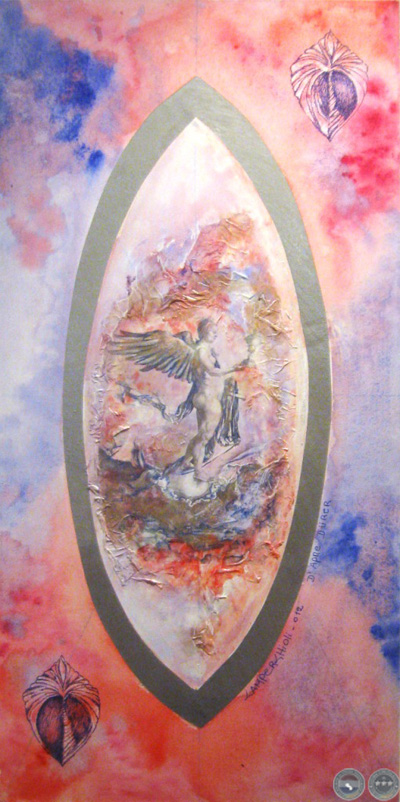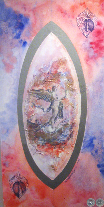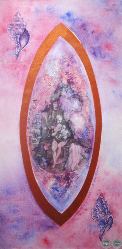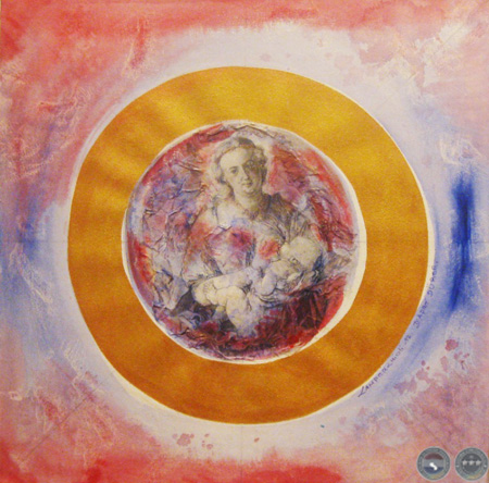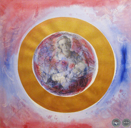 En las mujeres/diosas de los dibujos y grabados de Albrecht Dürer, encontré el punto de partida para reflejar un ESTADO DEL SER representado en la gracia femenina, sensual y maternal de sus curvas, gestos y actitudes. Mujeres totalmente presentes en el AQUÍ y AHORA, capaces de generar y nutrir señalando la conexión con el ETERNO FEMENINO. Las integré en MANDALAS de huevos, vesículas piscis y círculos. Formas geométricas que remiten arquetípicamente al nacimiento, al génesis, a la resurrección, a la ascensión y a la perfección.