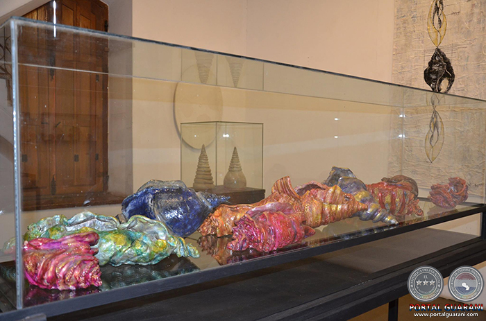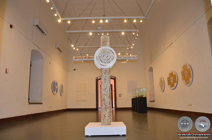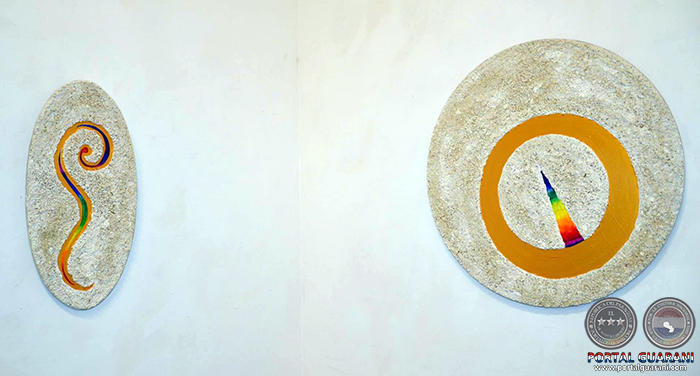 La curadora agrega que las instalaciones, en el itinerario de la muestra, nos remiten al origen y principio de las cosas y a lugares donde, como refiere el artista, “los opuestos se encuentran y se armonizan dando lugar a un nuevo estado”. “Estos cuadros, columnas y piezas de cerámica, intervenidos con pigmentos y texturas, dan fuerza y énfasis al trabajo del artista en búsqueda de su libertad creadora”, enfatiza.