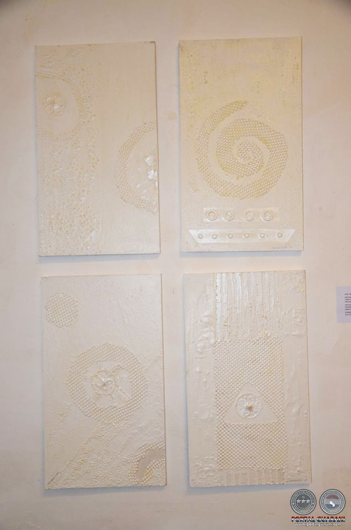 El artista explica que su trabajo consta de una serie de obras de pintura con técnica mixta con varios soportes diferentes como telas, madera y una serie sobre cerámica con sus temas de siempre: los caracoles, el círculo, los mandalas, los ovales. “El nombre obra en blanco remite a una de las fases de la alquimia que es donde se armoniza el ser humano buscando el equilibrio. Como sabemos el color blanco es la suma o síntesis de todos los colores, porque finalmente de lo que habla la exposición es de la luz. Por eso todo es blanco con unos toques de color”, comenta.