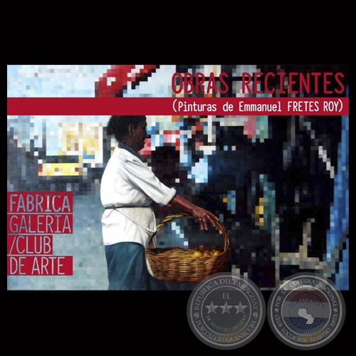El miércoles 25 de septiembre se inauguró la muestra de obras recientes de Emmanuel Fretes Roy en Fábrica Galería de Arte (Sgto. Martínez 271 c/ Telmo Aquino). Esta muestra está compuesta por pinturas al óleo hiperrealistas donde predominan la figura humana y las frutas. Las obras donde la figura humana es la protagonista se destacan por el efecto de “pixelado” reproducido pictóricamente, y que describen escenas de la vida cotidiana.