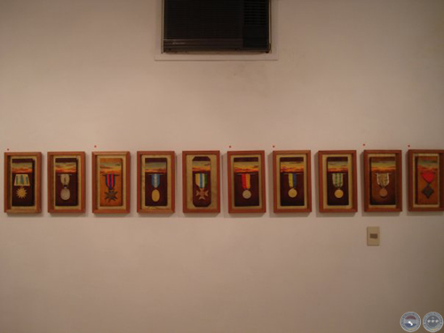 En las pinturas de la serie “1870” aparecen con los ojos vendados las figuras del mariscal Francisco Solano López, el emperador don Pedro II del Brasil, el general argentino Bartolomé Mitre y el general Venancio Flores, del Uruguay. Se incluyen, sobre pequeñas bases de madera, las medallas condecorativas otorgadas por los cuatro países contendientes a sus oficiales y tropas por los triunfos militares en célebres batallas. Con intervenciones propias del artista, algunos óleos muestran reproducciones de fotografías de la Casa Bate & Company de Montevideo que envió a sus fotógrafos a los escenarios de la contienda. A propósito, dos maderas que habrían sido ventanitas o puertas de algún viejo mueble fueron convertidas en soportes para mostrar imágenes de la iglesia de Humaitá, tras los bombardeos aliados. “Estoy emocionado, porque la intención mía no es lucrar con los cuadros, sino generar una reflexión acerca de este doloroso capítulo de nuestro pasado”.