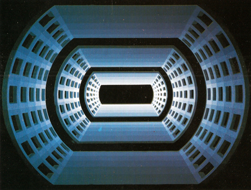 Hacia 1973, consumado el tiempo necesario de la investigación acerca de la geometría del color y cumplida la experimentación vanguardístico con luces y espacios reales, la imagen retoma su devenir pautado y sus calculados contornos y tantea las posibilidades que abre la tensión entre el puro plano y la profundidad figurada, El espacio pictórico, cubierto hasta ahora por las bandas, de pronto se devela, como disciplinada superficie en un momento, como hondura abismal, en otro, La extensión vacila: queda estática, se descentra o se desplaza, abulta y socava el plano, recobra por un momento sus dimensiones postergadas. El círculo, que apareciera aplastado en un mundo sin bultos ni perspectivas, comienza a desprenderse de su telón oscuro. Primero se convierte en una esfera cortada que alberga volúmenes y proyecta cuerpos: que inventa un fondo sin fondo y rasga, irreversible, los lindes del escenario. Centrado, hundido a medias en un vacío espeso y a medias flotando en el centro del abismo, el cuerpo exhibe el peso ingrávido de su materia recientemente compacta y define la autosuficiencia de sus dominios flamantes. Una vez estrenados sus derechos, la figura vuelve por momentos a cancelar toda dimensión tercera y se rearma, otra vez, desde las puras superficies y desde el movimiento que disloca y re-encastra las franjas planas. Ese retroceso parece significar una toma de impulso; pronto, la esfera vuelve a hincharse y a recuperar profundidades y volúmenes; vacila brevemente en cuanto a su rumbo hasta que se decide por abrir su interior habitado por otros espacios y termina por alargarse en formas elípticas, curvar las franjas y torcer la dirección de sus cortes transversales.
