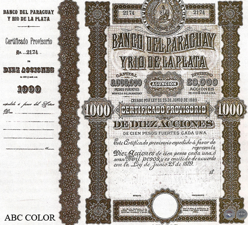 Certificado Provisorio del Banco del Paraguay y Río de la Plata.