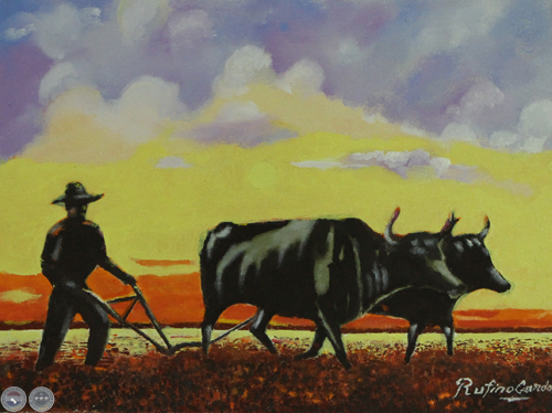 ARANDO EL CAMPO PARAGUAYO - Óleo de RUFINO CARDOZO