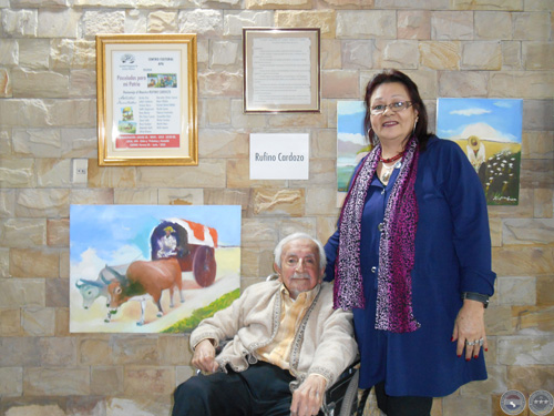 Viviana Meza, una de las artistas expositoras y Rufino Cardozo, 2015