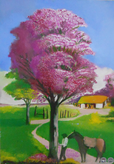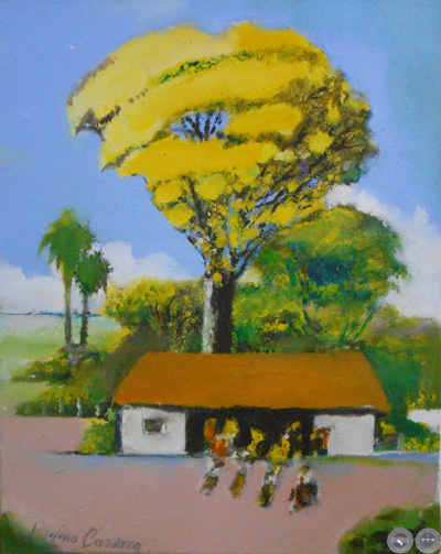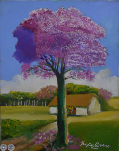 Es un verdadero gusto visitar las visiones pictóricas de Rufino Cardozo que nos hace trasladar por la inmensidad del monte en una cadenciosa carreta o visitar un amoroso ranchito en la lejanía o sentarnos al lado de una cuña a mirar un atardecer en el lago….o que sus distintivos tajy vestidos de lujuriosas flores rosadas , amarillas y blancas nos inviten a no olvidar su existencia.