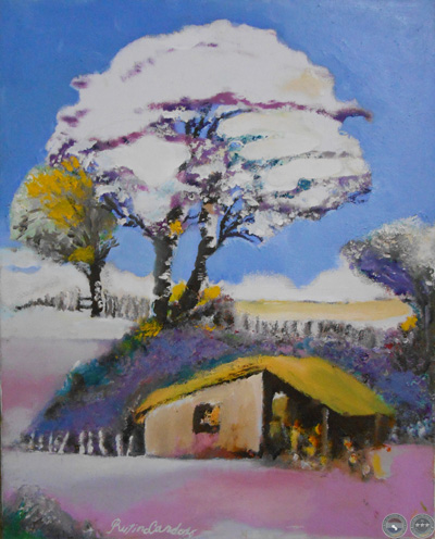 Lapacho y Rancho - Óleo de Rufino Cardozo
