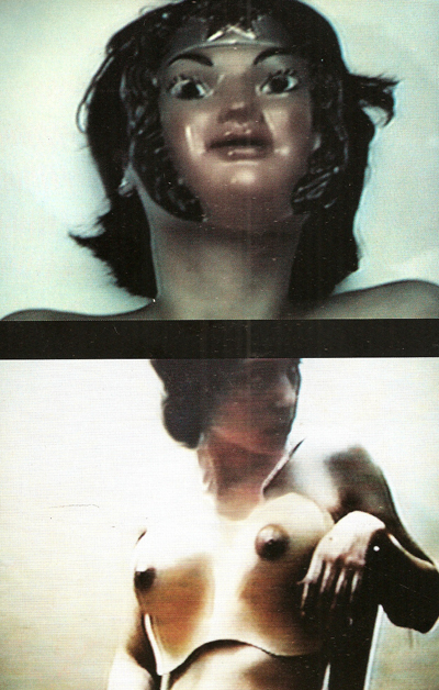 Claudia filma su cuerpo desnudo, en su totalidad y en partes, luego fotografía la imagen que el monitor le devuelve. Allí se busca y se requiere. Allí indaga y se pregunta. Las circunstancias de la vida y las fantasías del consumo son luego ordenadamente dispuestas en cajas negras de madera y vidrio, intento precario de emular a la alta tecnología. "Son televisores tercermundistas", dice la artista con ironía. A manera de tótem, con ellas reconstituye su imagen como en un espejo. El espejo en el que se mira y se rinde, cual Narciso eterno y contemporáneo, a la certitud de lo inalcanzable. ¿Identidad? El primer y último desafío.