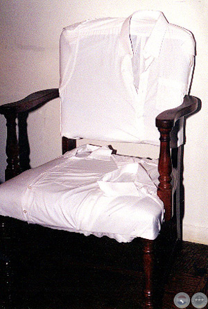 Silla tapizada con camisas blancas