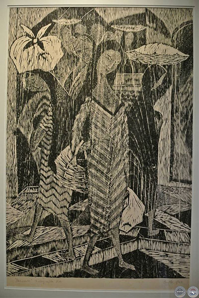 En los años ’70 yo solía visitarle a la siempre amable Leonor en su hermosa y maravillosa casa-taller ubicada en la esquina Juan E. O’Leary y Jejuí para comprarle grabados (principalmente del tema de los casamientos, como para ofrecerlos a nuestros amigos, precisamente como regalo de bodas). Entiendo, por supuesto, la necesidad del artista de buscar siempre otros medios de expresión, pero confieso que prefiero toda la vida sus grabados –sobre todo los en blanco y negro– antes que sus óleos posteriores de la serie de maniquíes…
