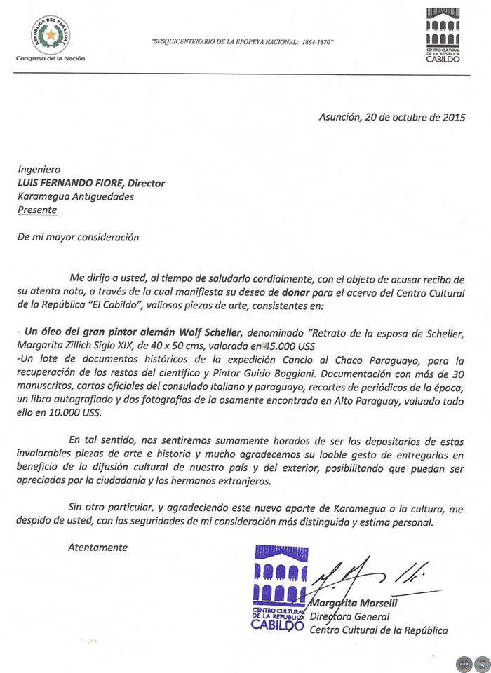 hará entrega en carácter de donación de un óleo del artista Wolf Scheller denominado