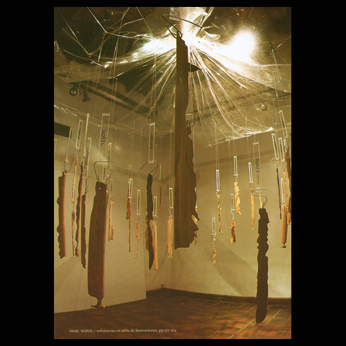 Lo he visto cortar, uno a uno, los bambúes con los que ha realizado esta obra: Inframundo. Cortar, no la caña, ya hueca, sino la planta, plena de savia vital. Este conjunto móvil de delgadas piezas escultóricas guarda, así, el espíritu del pequeño bosque de bambúes, plantado, regado y cuidado por él; el rumor de los brotes nuevos después de cada lluvia, tiernos pero imponentes. Este Inframundo sui géneris, que reinterpreta ese estadio sin nombre y sin color donde deambulan los muertos, está hecho de pura sustancia viviente. Viejo chamán, humilde jardinero, Ángel Yegros sabía que para esta obra, de tono ceremonial, ritual, sobrenatural, debía proceder al sacrificio. Un sacrificio ritual. Hacen parte de él todas las horas, todos los días, los meses, los años previos en ese espacio florido y misericordioso (su casa) hecho de trino de pájaros, aleteos de agua y zumbidos infantiles. Cada una de estas 52 piezas tiene una historia. No una historia narrada, sino una historia vivida: la del artista mago, mágico, hechicero, compenetrado de las fuerzas del cielo y de la tierra, en un mundo donde los circuitos del arte y el poder corren por otras vías.