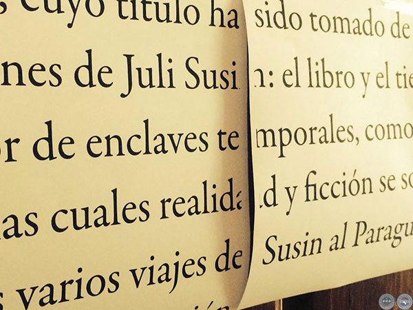 Violent Noon, título tomado de una novela de J. G. Ballard, gira en torno a dos obsesiones de Juli Susin: el libro y el tiempo. Mejor dicho, en torno al libro como decodificador de enclaves temporales, como password para encriptar y desencriptar historias en las cuales realidad y ficción se sobreponen a partir de la experiencia del viaje. Así, los varios viajes de Susin al Paraguay fueron trazando, azarosamente, el diagrama de esta exposición.