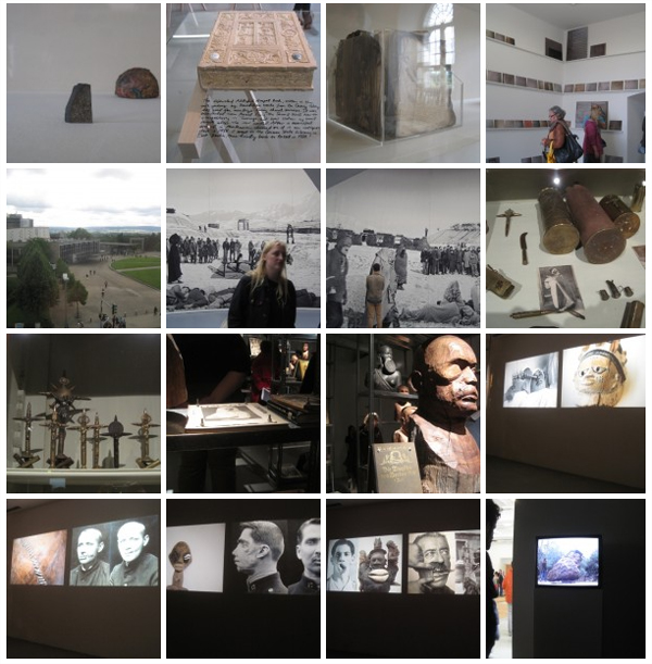 En el Fridericianum, uno de los primeros museos de Europa, exponen más de 180 artistas de 55 países. Aquí está “el núcleo central de Documenta”. Tras circular por la inquietante instalación de Ida Applebroog llego a la sala de Michael Racowitz, cuya obra “What dust will rise?” trasciende cualquier consideración estética sobre la puesta en obra para generar una obligada reflexión sobre la condición humana. El artista confronta los vestigios de los famosos “Budas de Bamiyán” -dos magníficas obras de arte sacro oriental destruidas hace pocos años por el fanatismo religioso- con los restos de la biblioteca del Fridericianum, quemada durante el bombardeo aliado a Kassel en 1941. Antiguos manuscritos casi carbonizados son expuestos en vitrinas propias de los museos de ciencias naturales, sobre cuyos cristales Racowitz dibuja y escribe. Leo, por ejemplo, la notable frase del Imán Omar en el momento en que las fuerzas Talibán hacían volar en pedazos las inmensas esculturas: “Sólo estamos destruyendo piedras”. A los pequeños trozos de los Budas debidamente clasificados y a las piezas medievales rescatadas sin mucho éxito del fuego se suma un tercer elemento arqueológico: un minúsculo meteoro caído a la tierra en 1954.