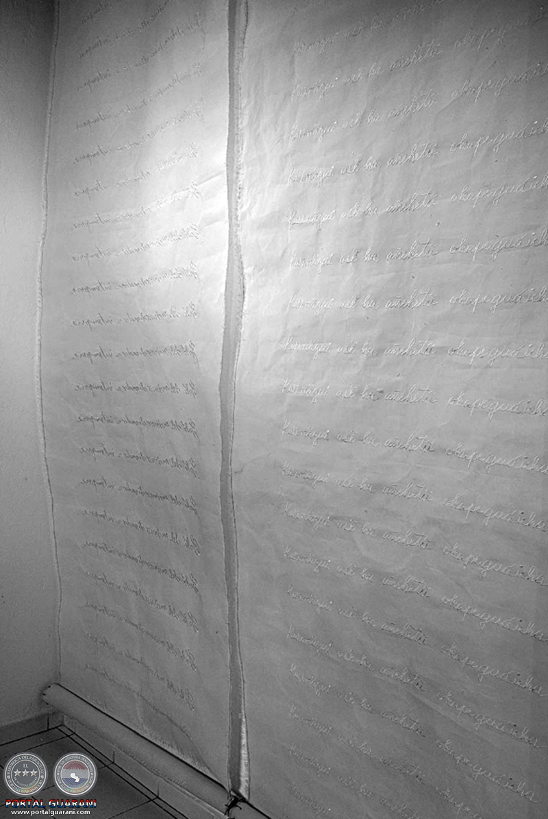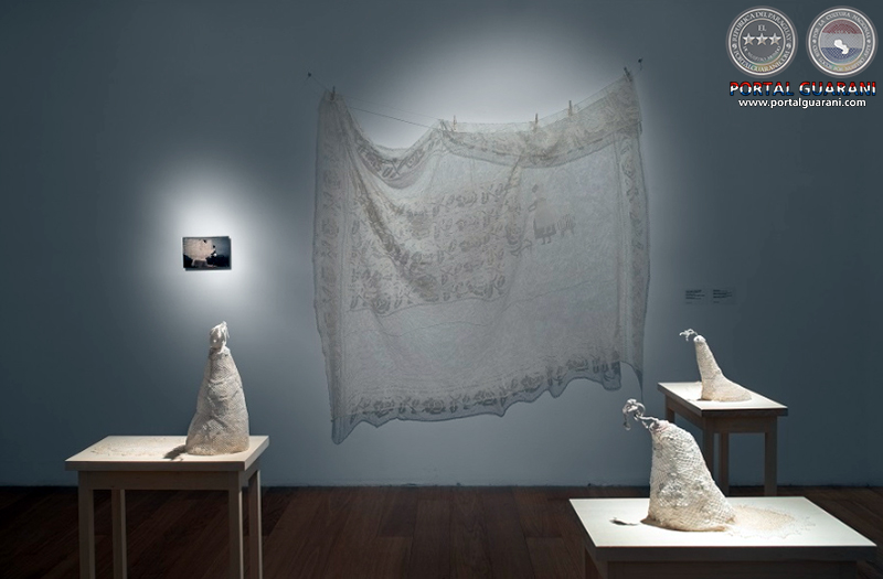 “Hay un hilo que une todas estas obras y que tiene que ver con las diferentes narrativas que ellas ponen sobre la mesa. Narrativas-hilos. Lo que yo deshilo tiene que ver con la idea de tejido y texto. Desde la escritura siempre hablo de tejido, no de texto. Hablo de que texto viene de tejido, tejere. En realidad, cuando uno está escribiendo, está tejiendo. Creo que aquí hice un poco la operación al reverso: cuando uno está tejiendo, está escribiendo. De hecho, no hay pocos mitos al respecto. El mito griego de Filomela, por ejemplo, que retoman diferentes dramaturgos. Filomela es violada y, para callarla, le cortan la lengua. Entonces ella borda y, en esos bordados, cuenta su historia. Creo que en el Paraguay, a través del tejido, las mujeres han contado otras historias. En ese trabajo que también guarda un poco de cuarto propio y una pequeña emancipación, sobre todo en el caso del ñandutí. Mi papá solía decir que el ñandutí es el encaje de la independencia de las mujeres. Siempre me pareció muy bella esa imagen del Paraguay contado desde esas mujeres al interior de sus cocinas, bordando y tejiendo. Una mujer me decía que a ella el ñandutí le ordenaba el día. Es eso: la vida atravesada por los hilos de los tejidos. A partir de allí, hay historias que no están en los relatos oficiales, historias mínimas, microhistorias generalmente dejadas de lado. Mucho de esto me viene a través de varios autores, especialmente Barbara Potthast. También es interesante ver que prácticamente todas las personas que están en la muestra son hombres. Como una especie de reversión del género. El hilo discursivo tiene que ver con eso: con el tejer unas historias diferentes desde estos lugares, que son los lugares del tejido, y cómo estos artistas retoman y desdicen historias hace tanto tiempo instaladas y las discuten”, dice Lia.