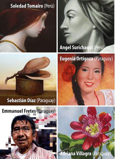 La curadora y crítica de arte María Eugenia Ruíz expresa lo siguiente acerca de las obras que presentan los artistas compatriotas para esta muestra: “Frutos silvestres se pueden observar en el escenario etéreo representativo de Sebastián Díaz, y flores de mburukuja (flor de la pasión) en la sutileza de las pinceladas de Adriana Villagra, contextualizando parte de las riquezas provenientes de la región central sudamericana. Indígenas de la parcialidad guaraní fueron resaltados con especial luminosidad en las obras de Emmanuel Fretes, mientras que el encanto y la gracia de la mujer paraguaya en sus danzas tradicionales son los temas abordados por la artista Eugenia Ortigoza.