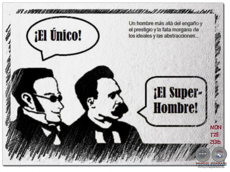 Para el caballero que lucha contra los molinos de viento que enarbolan fantasmas y póras de la más váira y variopinta evanescencia, Max Stirner (nombre de pluma del Caspar Schmidt nacido en 1806 y muerto en 1856 y famoso por su único libro El Único y su propiedad, editado en 1845), en el mundo hay, por un lado‚ ideas‚ conceptos, es decir‚ fantasmas‚ y‚ por otro‚ yoes agobiados por la frecuentación y el abuso de esas sombras que los mueven como a zombis, espantajos agitados por flatulencias emanadas de cerebros ebrios de abstracciones, globos de carne empujados por pedos de cadáveres: todo eso son los yoes agobiados de espectros, tiranizados de por vida al abdicar ante esa nada. La nada, filtro atroz por el que a veces, muy pocas, pasa y se constituye un yo, que entonces alcanza la condición incivil de criatura libre y amoral: el Único‚ que proclama desde su novedad esencial: «Soy el emperador de la nada» (Panero también parafraseó así a Max Stirner: «Yo he basado mi causa en nada, no hay nadie por encima de mí»).