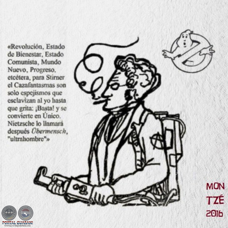 Que una idea se anteponga al yo y al individuo‚ que una abstracción –incluso si es positiva, en principio– dirija los actos humanos –por ejemplo‚ que la Revolución sea la meta de la vida de los hombres‚ que el señuelo‚ el «como si…» de la revolución sea su norte y termine justificando la muerte de seres de carne y hueso y sus anhelos– es lo que Stirner denuncia como mundo espectral en el que existe una dominación del yo por ideas elucubradas por otros hombres y colectividades. Humanidad‚ Revolución‚ Justicia‚ Estado de Bienestar o Estado Comunista‚ Mundo Nuevo‚ Progreso no son, para Stirner, el Cazafantasmas ad honorem, más que espejismos, fantasmagorías, póras que empayenan nuestra vida y la historia toda de la humanidad (que no es más que una historia de fantasmas). Vivimos en Póralandia, en Ghostworld, en Fantasmalandia hasta que un yo, al pasar por la iniciación de la nada, se libera, grita: ¡Basta! («El yo que gritó yo soy el Único», parafraseando el grito feminista sesentero), y se convierte en Único. Nietzsche lo llamará después Übermensch‚ «ultrahombre». Un hombre más allá del engaño y del prestigio y de la fata morgana de los ideales y las abstracciones‚ un hombre liberado de los pedos abstractos, de los flatus vocis, como llamaron Duns Scoto y otros nominalistas medievales a esas entidades vacías (ideas o pedos sin culo visible), pues este morbo hace estragos en nuestras vidas desde hace tanto que cabe considerarlo endémico y propio de la misma naturaleza enfermiza y divagativa del hombre. Tzara le dio al Único por otro nombre el de Dada‚ tomado de un santo mártir del mundo eslavo rumano.
