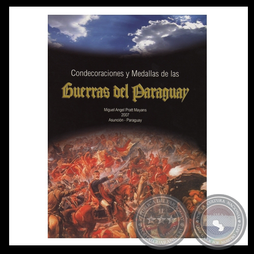 -. CONDECORACIONES Y MEDALLAS DE LAS GUERRAS DEL PARAGUAY/ 1864 - 1870 : GUERRA DE LA TRIPLE ALIANZA/ 1932 - 1935 : GUERRA DEL CHACO/ ANEXO : 1936 A NUESTROS DÍAS - PREMIOS MILITARES. MIGUEL ANGEL PRATT MAYANS, Editor. Investigación: MARÍA LUISA MEDINA DE PRATT. Coordinación: PILAR SAGALÉS DE BLASCO. Compaginación: MARÍA ARAMÍ PRATT MEDINA. Material Fotográfico: MANUEL MIÑO. NUMISMATICA INDEPENDENCIA S.A. - www.monedasdeparaguay.com . Tel.: 595 21 491553. Asunción – Paraguay, 2007 (296 páginas)