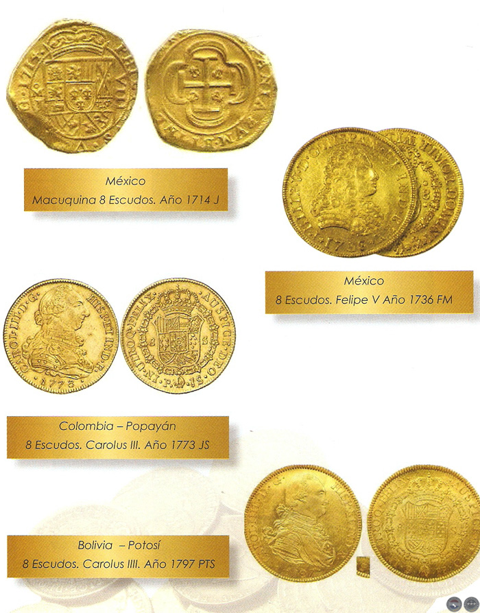 La doble escudo o doblón era la moneda de oro más utilizada con las piezas de ocho, para el comercio internacional.