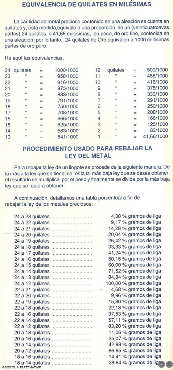 EQUIVALENCIA DE QUILATES EN MILÉSIMAS