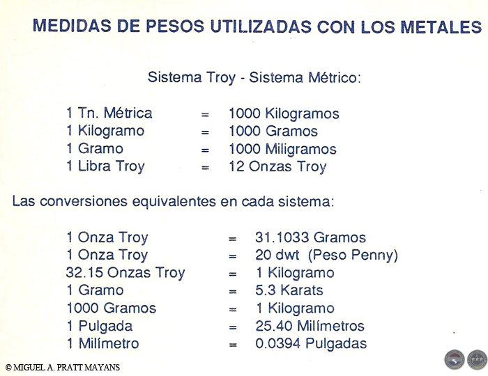MEDIDAS DE PESOS UTILIZADAS CON LOS METALES