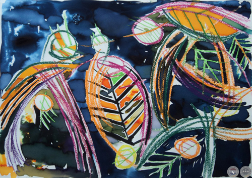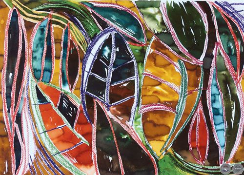 Bosque 2. Acuarela (anilina americana y pastel oleoso).